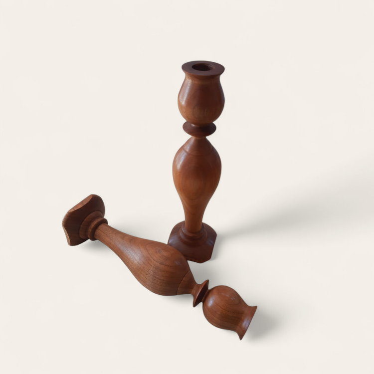 این جاشمعی زیبا از چوب گردوی طبیعی و یکتکه ساخته شده و بافت خاص و رنگ گرم چوب، جلوهای طبیعی و خاص به هر فضا میدهد.