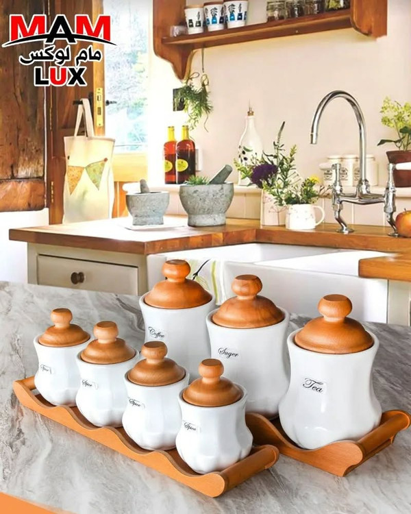 ست بانکه سرامیکی مام لوکس مدل کلاسیک ترکیبی از زیبایی، کیفیت و کاربرد است. این ست شامل هفت عدد بانکهی سرامیکی با دربهای چوبی و پایهی چوبی مقاوم میباشد که جلوهای خاص به آشپزخانهی شما میدهد.