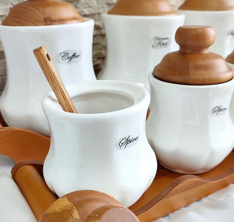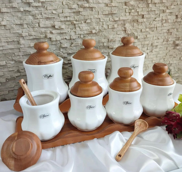 بدنهی بانکهها از سرامیک مرغوب ساخته شده که در برابر لکه و بو مقاوم است و درب چوبی آن باعث حفظ عطر و تازگی مواد داخل میشود. طراحی کلاسیک و رنگ گرم چوب با هر نوع دکور آشپزخانه هماهنگ بوده و فضای شما را لوکستر نشان میدهد.