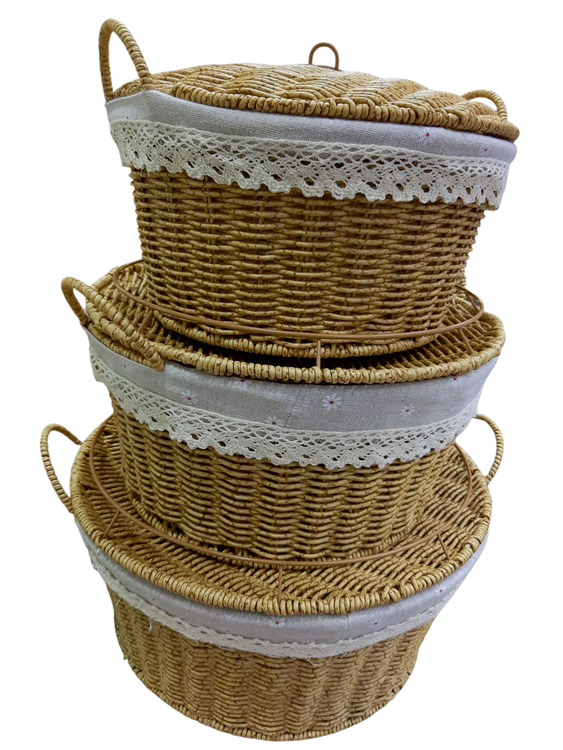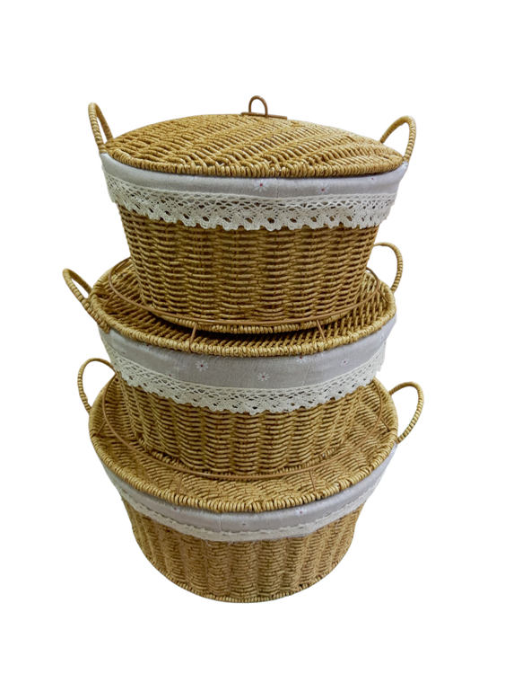 ست سهتایی سبد حصیری دربدار (وارداتی)