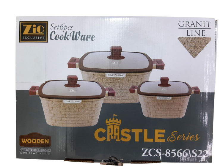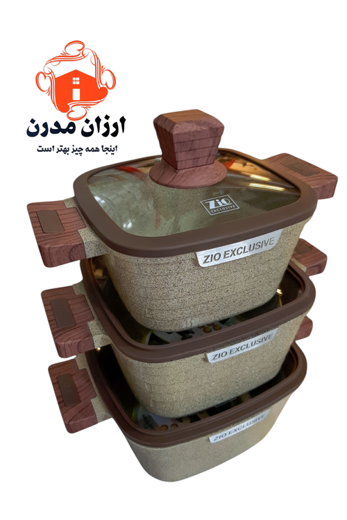سرویس قابلمه گرانیت زیو مدل 22-8566 شامل سه قابلمه با سایز های 18/20/22 می باشد که همه قابلمه ها و درب خود را دارند و در دو رنگ قهوه ای و کرم قابل دسترس است ویژگی این نوع از سرویس قابلمه این است که شما می توانید اندازه قابلمه را به دلخواه انتخاب کنید چشایان به ذکر است پوشش گرانیتی بکار رفته در سرویس قابلمه های زیو ترکیه ، بهترین در نوع خود است که دوام و عمر این محصول را افزایش می دهد و کاملا ضدخش میباشد . همچنین دسته های این محصول از جنس باکالیت است که کاملا مقاوم دربرابر حرات است که طرح چوبی دارد این سرویس قابلمه با طراحی بسیار شیک و خاص در آشپزخانه شما می درخشد با خرید زیو سالم و آسان آشپزی کنید.
