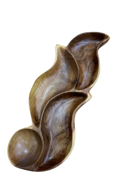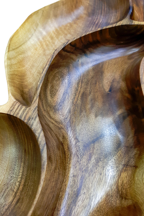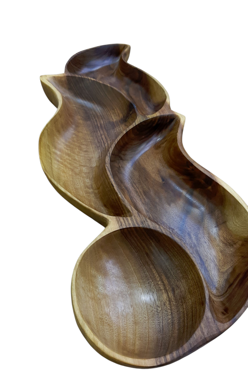 طراحی موجی و ایستاده این محصول، جلوهای هنری و متفاوت به میز پذیرایی، میز جلو مبلی یا دکور آشپزخانه شما میبخشد. بافت طبیعی چوب گردو و رگههای منحصربهفرد آن، باعث میشود هر قطعه کاملاً خاص و غیرتکراری باشد.