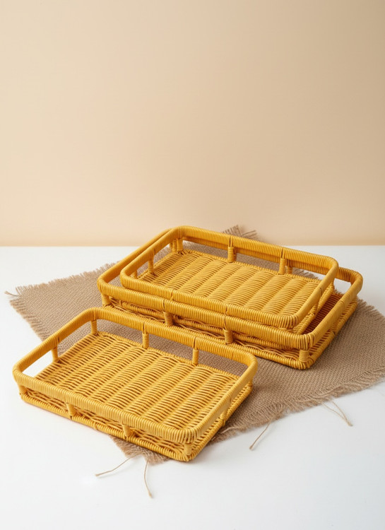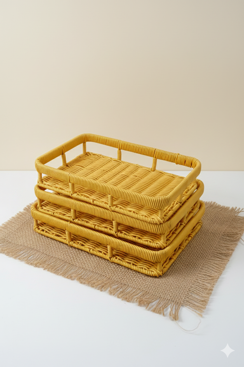 ست سبد حصیری مستطیلی ۳ عددی وارداتی | سبد نظمدهنده و پذیرایی حصیری دستبافت