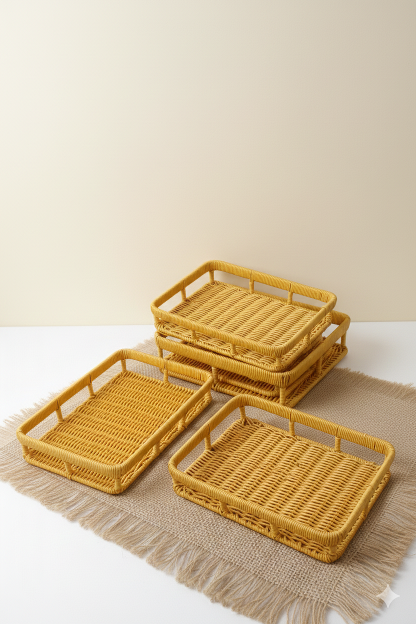 ست سبد حصیری مستطیلی ۳ عددی وارداتی | سبد نظمدهنده و پذیرایی حصیری دستبافت