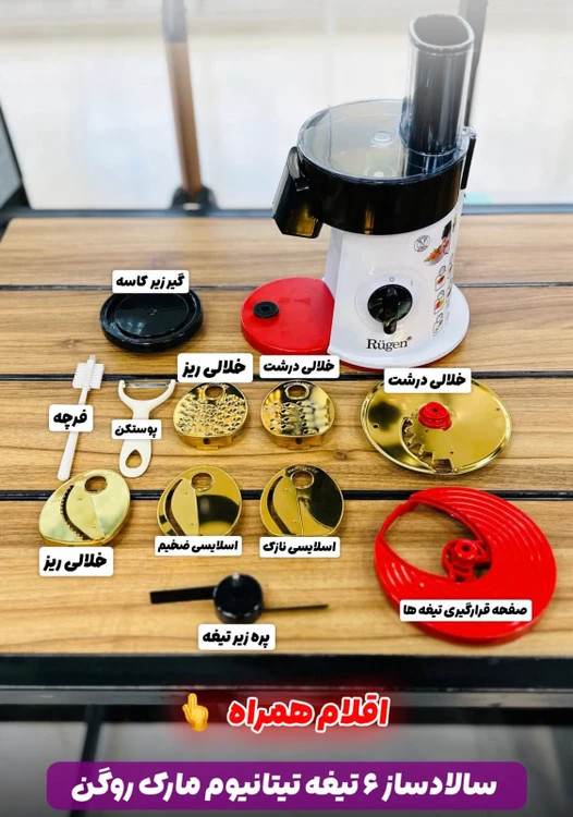 سالاد ساز و رنده برقی روگن مدل RU-1650 با ۶ تیغه