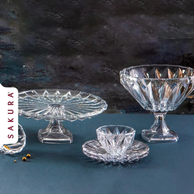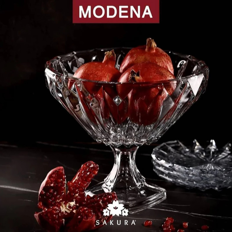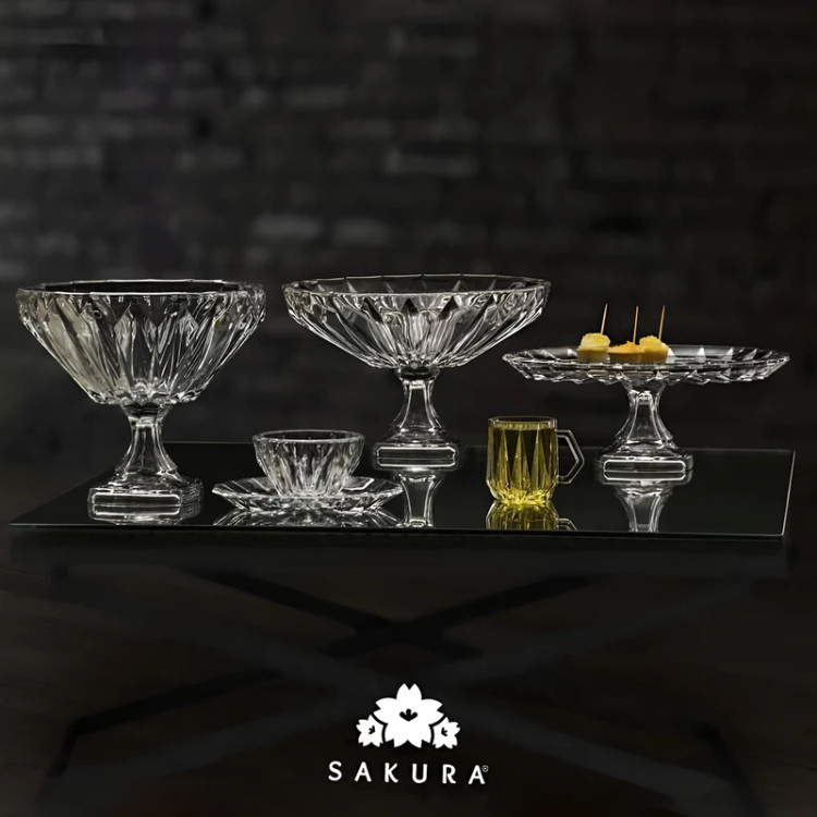 سرویس پذیرایی شیشهای ساکورا مدل مودنا با طراحی دایرهای و ظاهری شفاف و درخشان، انتخابی شیک و کاربردی برای میز پذیرایی شماست. این سرویس با فرم ساده و مدرن، بهراحتی با انواع دکوراسیون هماهنگ میشود و جلوهای مرتب و جذاب به مهمانیهای شما میدهد.