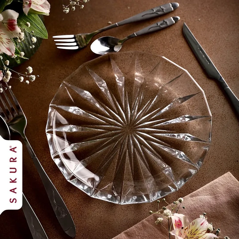 سرویس پذیرایی شیشهای ساکورا مدل مودنا با طراحی دایرهای و ظاهری شفاف و درخشان، انتخابی شیک و کاربردی برای میز پذیرایی شماست. این سرویس با فرم ساده و مدرن، بهراحتی با انواع دکوراسیون هماهنگ میشود و جلوهای مرتب و جذاب به مهمانیهای شما میدهد.