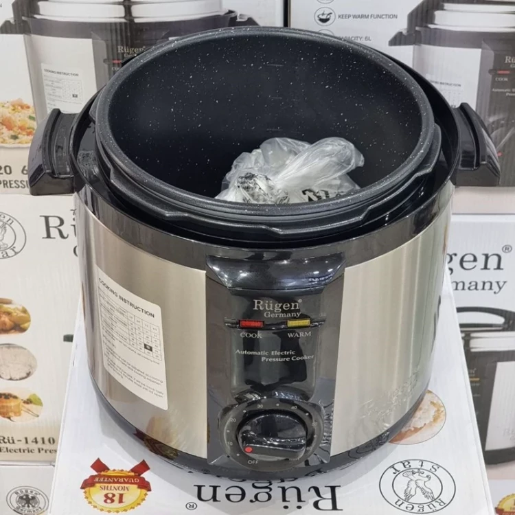 با زودپز برقی روگن مدل RU 1420، سرعت و کیفیت را به آشپزخانه خود هدیه دهید. این دستگاه با توان فوقالعاده ۱۹۰۰ وات و ظرفیت ۶ لیتری، گزینهای ایدهآل برای پخت سریع و آسان انواع غذا برای خانواده است. بدنهی مقاوم از استیل ضد زنگ، زیبایی و دوام محصول را تضمین کرده و دیگ داخلی با روکش گرانیتی، تجربهی پختی سالم و نچسب را فراهم میکند. کنترل پنل آنالوگ و کاربرپسند به همراه تایمر و سوپاپ اطمینان، استفاده از این زودپز را بسیار ساده و ایمن میسازد. این محصول باکیفیت از برند روگن، دستیاری مطمئن برای آشپزی روزمره شما خواهد بود.