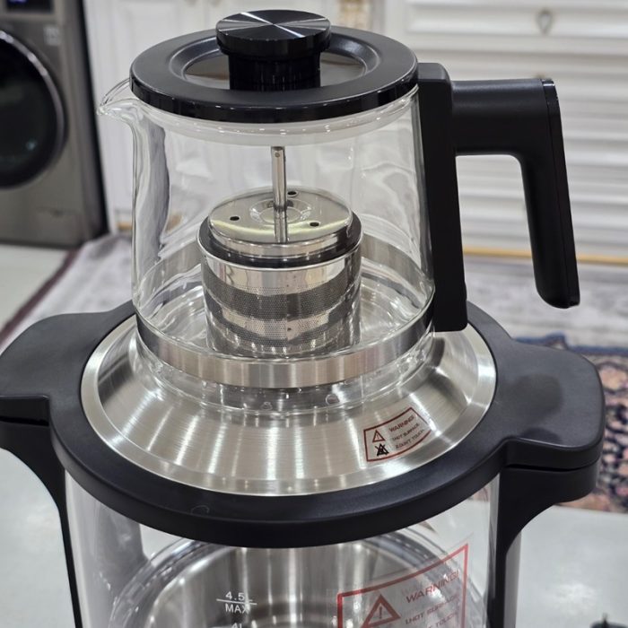 • قوری شیشهای آسانسوری با صافی استیل